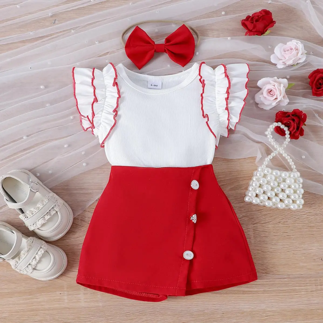 A cute and comfy 2-piece girls’ outfit featuring soft pink trousers paired with a matching top, complete with a stylish headband. Perfect for a coordinated, sweet look that’s both playful and comfortable for everyday wear.