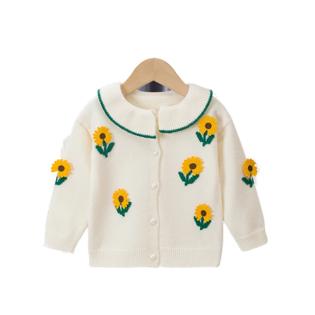 A vibrant 3-piece jeans set featuring trousers, a coordinating top, and a sunflower-printed top for a fun and stylish look.”