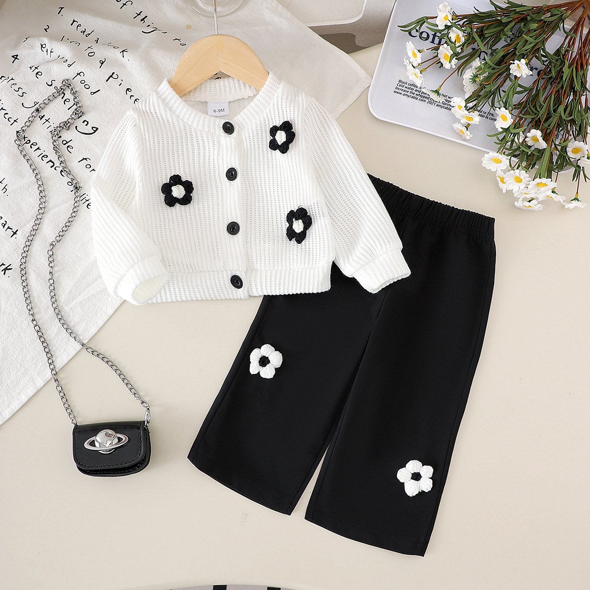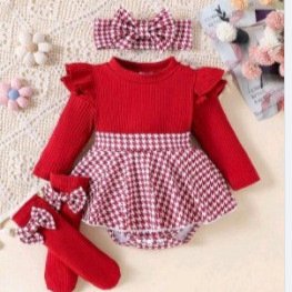 A cute and vibrant baby girl outfit set featuring a stylish skirt, matching top, and an adorable headband in a mix of black, pink, and hot pink. The bold color combination adds a playful, eye-catching touch, making it perfect for special outings or dressy everyday wear.