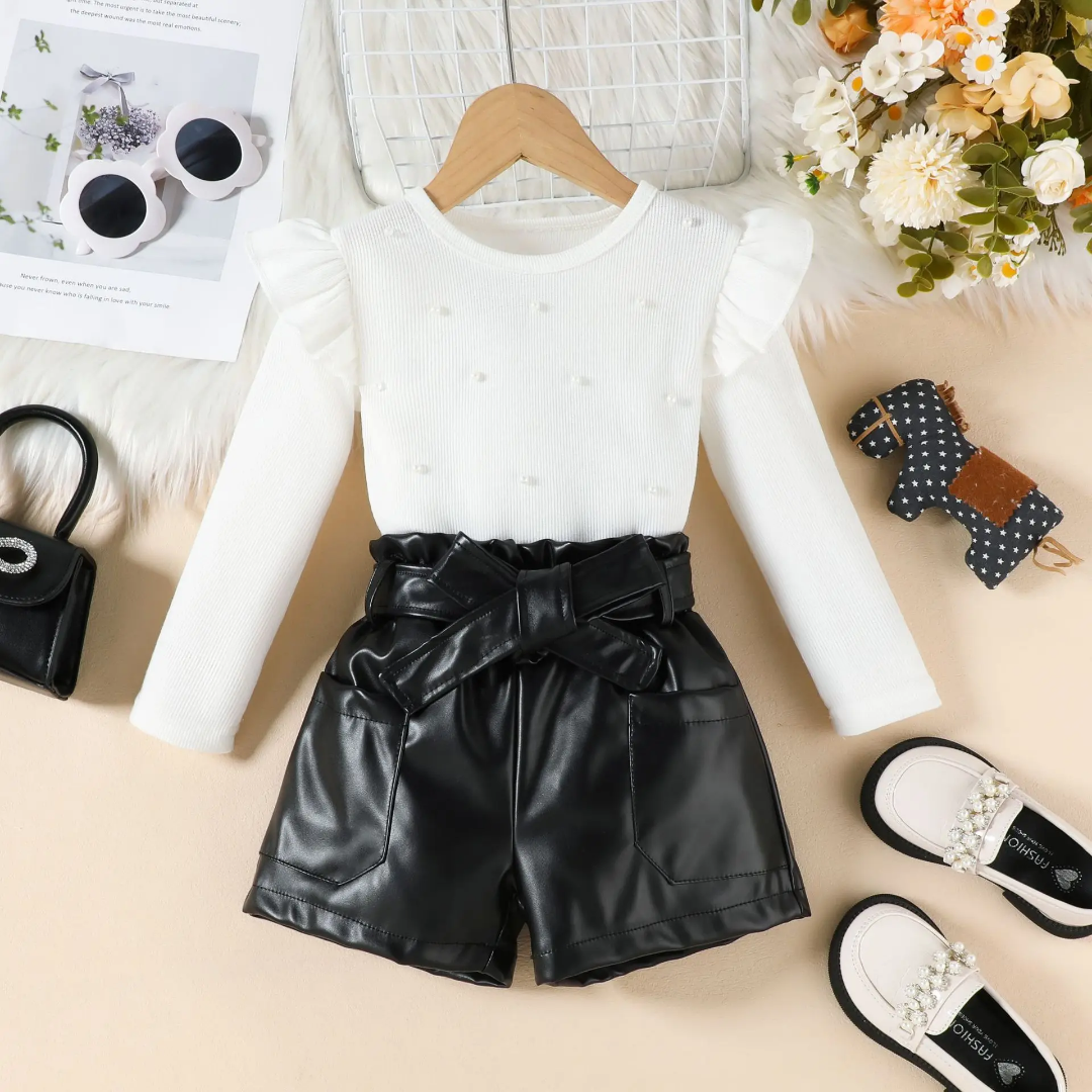 A charming 3-piece set with a pink, rose red, and black skirt, matching top, and coordinating headband for a stylish, playful look.”